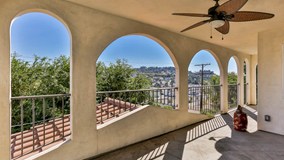 A stunning, sophisticated, Mediterranean sanctuary awaits you! Centrally-located in sought-after Eagle Rock neighborhood and settled on a hillside, this is a brand new home just built from the ground-up in 2012 with natural stucco and a Spanish tile roof. Step into a spacious living room with a corner fireplace and a incredible views. The 5-year old, young hardwood floors in the living room lead into the dining room and a very spacious, elegant kitchen with travertine floors, Italian granite countertops, and cabinets galore fit for entertaining. The living and dining areas connect to a patio where summer nights or cool winter mornings beckon you to enjoy the fresh air and snuggle with your favorite coffee or tea. Beside the powder room, descend the hardwood stairs into a central landing which connects 4 spacious bedrooms and a guest bath. The high ceilings on the bedroom level help the hot air rise in the summer, to which, along with the mature trees in the yard and custom Sunbrella awnings, help cool your slumber. In the master bedroom you will find a luxury hotel worthy bath, complete with Brizo hardware and a jacuzzi. The walk-in closet has ample space, and so do the closets in the other bedrooms. From the master bedroom and the bedroom beside it (or family room), step out onto another patio to enjoy your private balcony that spans the width of the house. From there, descend some stairs and escape into the landscaped paradise backyard oasis, complete with your own fountain and pond, mature trees to offer privacy, some young plumeria plants, bamboo, and assorted succulents, accented by giant cobalt vessels reminiscent of long ago - perfect for relaxing with family and friends. Facing the sanctuary backyard is a separate entrance with a custom Zen iron door leading to a secret finished basement and endless storage space, that could double as a studio or home office, whatever your dreams are made of. All sliding doors upgraded to Fleetwood, and there is a top-of-the-line security system with outdoor cameras. A 2-car garage and spacious driveway completes this one-of-a-kind, special place, looking for a new owner to love it and make it a forever home.