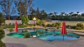 One of a kind Custom Single Story Stunner!! This 2014 beauty sits upon .78 acres. Beautifully built & designed this home complete with solar, features 4 bedrooms, a large office & 6 baths. As you drive up you will arrive to a lush, beautifully landscaped front yard. Entering the custom double door entry you arrive at a large dining room fit for entertaining. The huge family room takes you into a remarkable top of the line kitchen fit for a chef! Complete with granite countertops, stainless steel Decor 6 burner stove top, Custom Alder cabinets, double stainless steel KitchenAid oven, warmer drawer, microwave, dishwasher and built-in KitchenAid refrigerator. The master suite offers an oversized bedroom with a top of the line dream bathroom. Large walk-in cave shower, spa tub, quartz countertops, double sinks & vanity. As you make your way to the opposite side of the house you will pass by an on-suite with lush carpeting, walk-in closet & private bathroom with granite countertops & gorgeous tiled shower. As you find yourself towards the back of the house, you will arrive upon a mother-in-law suite. This suite is complete with ADA certified doorways. The suite also has a retreat with its own pool access & bathroom with granite countertops. Spectacular backyard with custom pool, built-in stainless steel BBQ as well as covered patio for entertaining. (Additional 14,000+ sq.ft. behind on flat lot to build tennis courts or another home!) The possibilities are endless!!