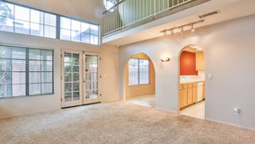 This is one of the largest floor plans available in this price range. Enter to soaring ceilings over a large living room illuminated by six windows and french doors. If you love natural light, this is your home! Since this is an end unit and an edge unit, no other buildings block the light. The huge master bedroom features several large windows, mirrored wardrobe doors, and a full en-suite bathroom. The kitchen and dining areas have wonderful interplay with the living room that's perfect for entertaining. The indoor laundry is set conveniently in the hall as you enter from the attached, directly accessible garage. A loft overlooks the living room and could be used as a home office or reading area. Central air and heat will keep you comfortable during all seasons, and you can cool off in the community pool on hot summer days and relax in the community spa. Unwind or grill on your private patio, and invite a few extra finds to enjoy the extra guest parking available to this unit. Grocery shopping, restuarants, and Rancho Park are all conveniently less than a mile away, and this location has easy access to the 210 and 57 freeways. Welcome home!
