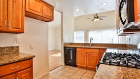 Turnkey single-story, end-unit condominium with an attached garage! Updated kitchen, baths, flooring, lighting, windows and much more! The open floor plan with vaulted ceilings has a breakfast bar that separates the kitchen from the dining area and living room. Sliding glass doors lead from the living room to the outdoor patio...it's a great floor plan! Engineered, hard-wood flooring throughout the living room, dining area and hallway. The kitchen has beautiful cabinets with granite countertops. The master bedroom has its own private vanity along with a walk-in closet. The updated 1 1/4 baths include newer vanities, mirrors, lighting and re-tiled tub/shower. Central air and heat. The community offers a pool, clubhouse and greenbelts. This is the most affordable home in San Dimas....come take a look!
