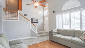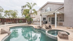 Beautiful 3 Bedroom, 2.5 Bathroom, Pool Home in the desirable Horsethief Canyon Community. This home has brand new sod in the front & back yard & new exterior paint. This home features tile & laminate flooring, raised baseboards, upgraded 6 panel doors & door frames, & plantation shutters throughout as well as a whole house fan. The whole home is wired for sound in the living & family rooms, master bedroom & office. The living room is spacious w/high ceilings & lots of windows. The family room opens to the eating area & kitchen. The kitchen has beautiful granite counter tops, breakfast bar, stainless steel appliances, recessed lighting, refaced cabinet doors & soft close hardware & an amazing view of the yard & mountains. The master bedroom is spacious w/vaulted ceiling, ceiling fan, spacious closet & a hidden office w/built in desk & separate AC unit. The master bathroom has a beautiful tile inlay shower, dual sinks, granite counters & plenty of storage. The remaining 2 bedrooms also have vaulted ceilings, ceiling fans & share a Jack-n-Jill bathroom. All of the bedrooms feature closet organizers in all of the walk-in closets. The backyard is an entertainers dream w/built in BBQ, bar, sink w/hot & cold water, covered patio, raised patio area, & fire pit area. The whole backyard is wired w/rock speakers & lights. The pool has poles for volleyball & rock accents that double as ice coolers. The yard also features a mini orchard w/9 types of fruit trees, as well as a grape vine & herb garden. Both sheds stay w/the property & have electricity. The Horsethief Community has many features such as 2 pools, clubhouse, gym, sports court, dog park, playgrounds, exercise trails and much more.