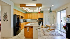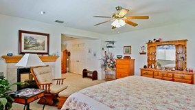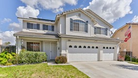 Have you been waiting for that 5 bedroom, 4 bathroom home to come on the market? Well wait no longer! This home has all the extras. Step into the tiled entryway to the formal living & dining rooms w/recessed lighting & ceiling fans. The dining room has a sliding glass door that leads you out to a private patio area w/ gas fire pit perfect for entertaining guest. The kitchen is spacious w/island including sink & bar seating, black & white granite counter tops & back splash, & lots of storage space w/walk in pantry. The kitchen also features an eating area w/recessed lighting & ceiling fan. The family room is large & spacious w/laminate flooring, ceiling fans, built in desk & entertainment niche. Head down the hall to the downstairs bedroom & full bathroom as well as laundry room w/sink, cabinets & counter space. Head upstairs to the large theatre room/loft w/recessed lighting, ceiling fan & laminate flooring complete w/full bathroom. The master bedroom is a private space all your own complete w/large master retreat w/2 way fireplace & large bedroom. The master bathroom features dual sinks, shower, soaking jetted tub & massive walk in closet featuring custom organizer. The remaining 3 bedrooms upstairs share 2 full bathrooms & are spacious w/custom closet organizers & ceiling fans. The backyard is large & spacious w/Built in BBQ island, raised spa w/privacy, fountain, covered patio & gates perfect for your fur babies. This home as 2 solar systems to save you $$!