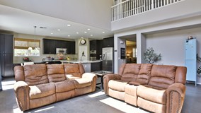 Exquisite two story home, 4 bedroom + den and 3.5 bath in highly sought after Sycamore Creek neighborhood. Long driveway, Beautiful REAL African Plains hardwood floors and tile throughout. Kitchen is equipped with stainless steel appliances including a dual oven, granite counter tops with seamless cabinets and drawers. Open living room with high ceilings and recess lighting. Large master bedroom with dual closets leading to the master bathroom with large bathtub, shower and an optional sitting area. Walk out to the backyard with a large stone walk way to a gorgeous modern patio. The community has its own Elementary School, Sports Parks, Club House with Fitness Center with Planned Monthly activities. Beautiful Pool and Water Park. Close to Restaurants and Shopping.