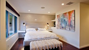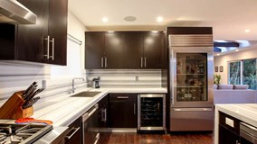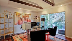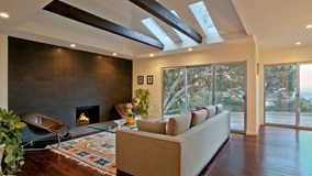 Nestled in the hills of Sunset Plaza is this sweet contemporary style home, ideal for modern day living. An abundance of natural light during the daytime and shimmering city views at night through the wide windows accent hardwood floors, high wood beamed ceilings, and skylights. This home features three en-suite bedrooms with spectacular views from the upstairs master bedroom and guest bedroom. An open floor plan awaits guests downstairs with a living room, dining area, family room, and second guest bedroom. The chef's kitchen is equipped with gorgeous, original Striato Olimpico, marble countertops, a glass door Sub-Zero refrigerator, two drawer dishwasher, wine cooler, Wolf oven and range, and drawer microwave. The breathtaking and majestic views of the city lights below are endless from the living room, family room, and deck area. This home is equipped with black out curtains, built-in speaker system, security alarm with cameras, Nest thermostat, and recessed lighting. Moments from the famous Sunset Strip and above Chateau Marmont, this modern-day sanctuary awaits.