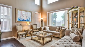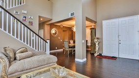 Beautiful Move in Ready Mountain Gate Home. This home features 4 beds, 2.5 baths, & 3 car garage. Enter to high ceilings & beautiful dark chestnut laminate wood flooring. This home features cased in windows throughout the downstairs & master bedroom and new carpet and paint throughout. The formal living room is light & bright with lots of windows. The dining room features upgraded baseboards & crown molding. Just off the dining room is the laundry room & butlers pantry. The butlers pantry features beautiful granite counter top with glass display door cabinets above & more cabinet space below & conveniently connects to the kitchen. The kitchen is spacious with lots of counter space & cabinets. The kitchen also features a large pantry, upgraded recessed lighting, granite counter tops, & stainless steel appliance. The family room features ceiling fan & beautiful fireplace with custom tile design & mantle. Head upstairs to the master bedroom that has new carpet, ceiling fan, custom paint with accent wall & high ceilings. The master also features 2 closets with mirrored doors & private large balcony. The master bathroom has 2 separate vanities, updated lighting, & separate shower & tub. The remaining 3 bedrooms also feature ceiling fans & new carpet. The upstairs hall bathroom has dual sinks & shower & tub combo. The backyard is nicely landscaped with covered patio. This home is walking distance to a large greenbelt, several parks & schools & is close to shopping & freeway access.