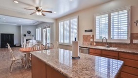 Stunning single-story Crestview Estate home on a quiet cul-de-sac! The curves of stacked stone and masonry hardscape create a delightful first impression against mature front landscaping, and the smooth path from driveway to front door enhances accessibility. With great flow between living room, family room, dining room, and eat-in kitchen, there's plenty of space and the perfect atmosphere for entertaining. High ceilings and abundant natural light enhance the already spacious floor plan. The kitchen offers lots of counter space for your favorite appliances and prep along with a large island for easy buffet-style serving. The 15 kitchen cabinets and walk-in pantry provide tons of storage room. The large master bathroom features oversize tub, separate custom-tiled shower, two sinks, and access to walk-in closet. Granite counters, recessed lighting, plantation shutters, new carpet, and new interior paint throughout tastefully complete the luxury finishes. A pull-through "boat garage" means not only more space for toys in the garage but also access for parking them in the expansive backyard, and that's on top of the extra-large driveway and extra garage storage. The backyard features new sod and nectarine, apple, peach, lemon, orange, and jujube trees amidst mature landscaping. Shopping, movies, groceries, restaurants, and access to the 60 freeway are just a few minutes from home. You'll have to see it to appreciate it! The photos and videos don't do it justice. Welcome home!