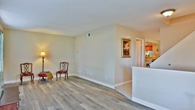his townhome is the perfect for new homeowners or empty nesters. This property is within the Village Grove Townhome Assoc., a hidden gem in the heart of Corona with a private lake and lots of amenities. Step through the front door into the living room and dining room area featuring brand new luxury vinyl plank (LVP) flooring and high baseboards. The kitchen is beautifully remodeled with stainless steel appliances including stainless steel hood newer cabinets and Corian counter tops. It also features a spacious Kitchen island with seating and pendant lighting all opening to the eating area. The eating area also feautres the LVP flooring and ceiling fan. Step through the double doors to your private patio with patio cover, slate tiles, bar seating at the kitchen window, perfect for entertaining & BBQ's and newer vinyl fence. Head upstairs to the spacious master bedroom with private master bathroom and features wood laminate flooring, ceiling fan and large private patio that features views of the San Gabriel Mountains. The 2 remaining bedrooms are also spacious and share an upstairs bathroom. The downstairs also features a laundry room and half bathroom. This home is a part of 2 associations which gives you double the amenities which include access to 2 pools, a park, 2 BBQ areas, private lake, paddle boats, fishing, security and much, much more. Home is also walking distance to Coronita Elementary school and close to the 91 Frwy access.