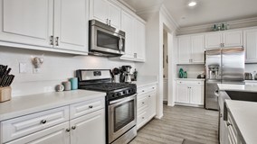 Beautiful Meritage home built in 2016 w/ every upgrade you could ask for & then some! This turnkey 3 bedroom, 2.5 bathroom, 2,161 living sqft two story home sits on a 4,056 sqft lot w/ views of the San Bernardino Mountains near Sierra Crest & Condor Parks with no HOA! The home features interior wood pattern ceramic tile flooring downstairs, top-notch carpet upstairs, quartz countertops, a massive 10ft. kitchen island w/ farmhouse apron sink, 24 paid off solar panels generating 6,000+ KW leaving zero monthly electricity bill, computer nook w/ built-in storage, open loft, decorative & recessed lighting, crown molding, ceiling fans, custom barn doors, master bathroom w/ dual vanity, enclosed shower w/ jacuzzi tub, laundry room, keyless entry system, 4 camera security system, dual pane windows, epoxy on garage floor, upgraded energy efficient foam insulation, Central heating & AC plus more. The exterior has a landscaped front yard, maintenance free backyard w/ covered patio & block walls.
