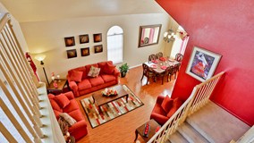 Beautiful home in Charming Rancho Cucamonga area, features 4 bedrooms 3 baths, One bedroom is down stairs currently being used as a office with recessed lighting, One Bath down stair with walk in shower & tile flooring, very nice wood laminate flooring through out downstairs living area. Tastefully decorated home with mostly neutral colors through out. Nice living room, dining room with plenty of natural lighting and high vaulted ceilings. Nice kitchen with stainless steel stove, stainless steel mini fridge for wine, stainless steel hood, stainless steel sink, cozy eating area also in the kitchen, nice granite counters with breakfast bar area, lovely family room with romantic fireplace for those cold nights to keep you warm, indoor laundry room, beautiful staircase leads you to the upstairs master bedroom, large master bathroom with separate shower and nice oval tub with tile flooring and dual sinks. Additional bathroom upstairs was remodeled in the last couple of years, additional guest bedrooms are tastefully decorated, one of the guest bedroom has a large area that is used for storage, this can possibly be an extended bedroom to fix any way you want possibly a reading area or small work out area. Nice sized back yard for intimate gatherings with new rear patio.