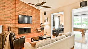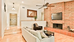 Nice single story pool home. Large open floor plan with 2062 sq ft of living space, 3 bedrooms, and 2 full baths. Wood flooring, double pane windows and sliders throughout. Updated kitchen with granite tiled counter top, recessed lighting, & breakfast nook. Dining room, step down living room with cozy fireplace & recessed lighting. Nice open family room with 2 sliders to the back yard, high ceilings, and beautiful view of large back yard and pool. Great for entertaining.