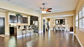This beautiful home hasn't been on the market for almost 2 years! As we know home owners are becoming more aware of the fire hazard and safety precaution so they become more concerned about how safe their house really is? Don't worry! This home comes with its very own fire sprinkler system to protect at all times even when you are miles away. As you walk in the dark laminate flooring appears Impulsive for the opening of entertainment and relaxation with luxurious plantation shutters to block out the sun from strong rays and getting the most comfort of your home with summer still in season this home gives you the option to be inside or outside. Voluminous kitchen installed with Granite countertop and your very own custom dark hardwood cabinets installed by man Promptly as you walk out the backyard It greets you with 3 over head intemperance ceiling fans and lights that are connected to the Alumuawood outside patio cover with tons of flowing cool air. When it comes to winter nights cold and lavish with your very own customized Built in gas fire pit comforting you with warmth connected with an emerging waterfall. In act of bringing you back inside it leads to the downstairs bedroom with its very own one full bath that can be used as a guest room. 4 bedrooms upstairs including the massive masters with a full bath tub and two walks in closets. It's within minutes to the Interstate 15. This home is in great condition and Greatly maintained. "SOLD AS IS