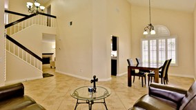 Elegance awaits inside this turn-key 2 story home in the city of Fontana. As you pull up to the perfectly manicured front lawn you'll notice the impressive curb appeal. Step into luxury as you walk through the spacious formal living room and dinning area which are perfect for entertaining. The kitchen boasts contrasting dark cabinets and light granite countertops creating a modern look. The kitchen comes equipped with plenty of storage, double sink, and dining nook perfect for enjoying your morning coffee or an intimate dinner. Just around the corner you'll find the family room complete with a gorgeous fireplace that will make you just want to get cozy alongside it. Make your way upstairs where you will find the grand Master Bedroom with arched entry to the en-suite bathroom with separate tub and shower. The 2nd and 3rd bedroom's allow for easy access for natural light to illuminate the bedrooms or shut out the light through the large shuttered windows. One half bathroom is located downstairs for convenience and a separate laundry room with easy access to the 3 car garage. In the backyard you can enjoy the lattice patio cover and the luscious green grass. The only thing this house is missing is YOU!