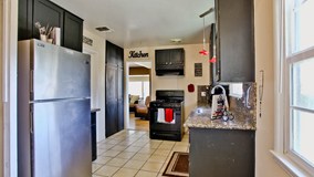 Amazing opportunity to own a 3 bedroom 2 bath home with a 1 bedroom Guest house in back. Great for rental or Extended family visits. Front house has beautiful curb appeal, water saving front landscape, nice front porch. As you enter the home you will notice the hardwood floors, natural light, great layout, custom paint. Updated kitchen with granite countertops, tile floor and new dishwasher , 3 large bedrooms, Upgraded bathroom with wainscoting paneling bottom half and custom color top half, 2nd bathroom with tiled countertop in great condition and upgraded Pergo wood floor, home has central air and heat and upgraded windows and lots of storage space. One bedroom guest house has separate entrance, open floor plan, upgraded bathroom, great view of yard, own patio and storage area. Nice backyard has with large covered patio, orange and avocado trees, Home has plenty of parking, large gated driveway, room for RV. The view of the Beautiful mountains can be enjoyed on the front porch.