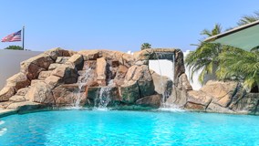 Beautiful 4 bedroom 2 bathroom home on large lot. This home has everything! Welcome home to a beautiful grass front yard with mature trees, and large patio so you can enjoy those beautiful summer days! Enter to an inviting step down living space, dining room, and additional family room with double sided fire place. Open kitchen with built in gas grill and chef style hood! Private laundry space with sink and tons of storage. Large bedrooms with customized closets. Master bedroom includes remodeled bathroom, and direct access with large slider to backyard. The backyard presents opportunity for entertaining with a large patio cover and seating area, salt water pool and spa with rock slide and waterfall, garden area, and privacy fencing. Additional large workshop approximately 1480sqft with double automatic garage doors. Covered RV Parking, PAID solar. Bring Your Toys! This home is a must see!