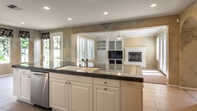 An Exceptional home awaits your family...in this Tuscan home are many bold and beautiful elements. The open and bright kitchen features a butler's pantry, SS appliances, a large eat-at granite island which is a real work station as well as additional dine space. It unfolds to an open family room with storage and display built-ins, a cozy FP with mantle and french doors to the side patio. A first floor bedroom and bath. Several rooms have ceiling fans and wide shutters. All bedrooms have baths attached. Corner lot, private and quiet cul-de-sac in Gated Long Canyon in Wood Ranch. access to pools, spas, club houses, a gyn, walking paths, hiking .