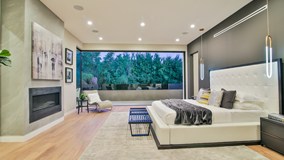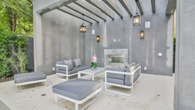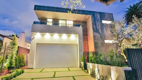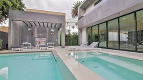 Step through the custom oversized front door, and you'll find yourself experiencing California's indoor-outdoor lifestyle. The open floor plan includes living & dining spaces featuring designer tile flooring, vaulted ceilings, fireplace and a wall mounted wine display. The spacious kitchen features Miele appliances. Beyond the pocket doors, you'll find a gorgeous back yard with a pool, spa and sitting area. The sunny office features an en suite bath. The doublewide walnut staircase leads upstairs where you'll find two bedrooms with en suite baths, as well as a sitting area & laundry. Pocket doors lead to a private terrace in The Master Suite, which features a spa bath and a substantial walk-in closet. The expansive rooftop deck with fireplace offers a tranquil space for entertaining with sprawling views of the city and LA's iconic Palm trees. The property is secured by a Control4 system, and is located on a quiet street conveniently located near the Melrose shopping district.