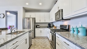 Welcome to a home you would want to call your own! An elegant modern floor plan will have you wanting to enjoy creating memories with friends and family. The moment you walk through the door you will experience the ambiance of clean lines, neutral colors and an open spacious lifestyle. Walking into the kitchen will have you wanting to create wonderful home cooked meals. The flow of the kitchen and dining room into the family room will allow the chef of the house to always stay connected with friends and family! The backyard is upgraded with artistic stamped concrete and fire bowls that keep any party large or small wanting to dance the night away! As you walk upstairs you will be greeted by a loft that could easily be a second family room. The master suite is on one side of the home, while the secondary bedrooms complete with their own bathroom are located at their own spacious wing of the home. This is a must see property to truly experience and appreciate the custom touches, you will want to stay and start living in this sweet villa the moment you walk through the door!!!!!
