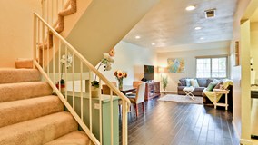 Gorgeous Townhome in the Orchard Meadows community! Perfectly situated in Rancho Cucamonga, this is a wonderful community to call home! Upgraded and spacious, this sought after floorplan offers 3 bedrooms and 2.5 baths with 1,357 sq ft of expansive living space and some very smart enhancements like the tankless water heater and Nest thermostat. Entering the home you are greeted with elegant wood flooring that permeates the first level. The large living room is open and bright, with natural lighting from the sky light. Looking for an upgraded kitchen? You'll find it here! The kitchen offers tile flooring, granite countertops, and recessed lighting. The master bedroom, located upstairs, is a true sanctuary with vaulted ceilings, a private balcony, full private bathroom, and a walk in closet. The secondary bedrooms are an ample size with a shared bath upstairs. Outside is an ample gated front patio offering an enjoyable outdoor living space! With a 2 car attached garage, this Townhome really has it all! Hurry to see this Townhome becuase it will sell fast!