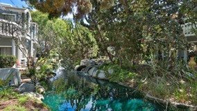Guard-gated resort style living in Surf City USA and just minutes from the beach! Have you been waiting for an updated 2 bedroom PLUS a spacious loft model with a stream view to hit the market? Well, now’s your chance! Some use the loft as a 3rd bedroom/home office/den. This lovely floor plan boasts soaring volume ceilings in the living room with lots of windows, a skylight and a cozy fireplace. This townhome has been recently upgraded with quality hardwood plank flooring (not laminate) and brand new designer carpeting in the 2 bedrooms. The kitchen cabinets have been refinished and new quartz counters were installed, along with an undermount single-basin sink and faucet. The master bathroom will make you feel like you’re living in a chic hotel with a large walk-in shower with pebble flooring and a new modern double vanity and wainscoting elegantly covering the walls. The 2nd bath recently had the bathtub refinished and new sink/shower faucets installed. Washer & dryer are included. Oversized one car garage. The large entertaining deck is surrounded by trees, streams, and waterfalls. Beautiful, tropical, lush grounds with amazing community amenities: walking distance to two pools/spas & tennis courts, clubhouse, sauna and even a racquetball court! You may be doing more staycations if you end up buying this lovely townhome!