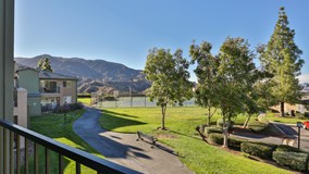 This single story condo, on the second story, captures all of the beautiful views of the Cleveland National Park, mountains and city light views. With 2 bedrooms and 2 bathrooms this condo in Corona under $300k is the perfect starter home! Step into the living room with high ceilings, tile flooring and plantation shutters. The dining area and kitchen are located just off the living room in this open floorplan. The dining area has a lighted ceiling fan and plantation shutters, while the kitchen features cherry wood colored cabinets, granite countertops, farm style sink and stainless steel appliances. The first bedroom features a full bathroom directly attached. Both bedrooms feature white tile flooring, plantation shutters and huge closets. The first bathroom features an update bathroom with matching free standing sink and cabinets, mirror and wall mounted cabinet. The second bathroom is custom designed tub & shower with tiled walls and free standing sink and cabinets. The private patio has amazing views of the Cleveland National Forest, mountains, and city lights as well as the community center and amenities. The laundry space is also located here. The community amenities include basket ball and tennis courts, pool & spa, gym, clubhouse, dog park, walking trail, 1 assigned parking space, and water and trash. Don't miss out!