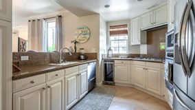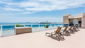 Spacious, sunny, beach condo with sand and ocean views! 3 bedrooms and 2 full bathrooms, large master suite features walk-in closet, jet tub, separate shower, dual sinks, and marble tiles. The gourmet kitchen with granite counters overlooks the open living room, which features a dining area, gas fireplace, two balconies, gorgeous herringbone patterned wood floors, and ocean views. Two guest bedrooms, inside laundry, and formal entry. Plus 2 side-by-side parking spaces and a storage locker. Community features pool, spa, gym, community room, and the expansive sun deck with sweeping ocean views, and direct beach access. This is truly beach living at its finest!