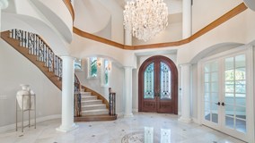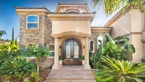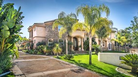 Stunning home in the distinguished gated community of Royal Hunt Ridge Estates in Alessandro Heights. Giant double, Spanish-style entry doors lead to a custom marble tile foyer lit by an exquisite crystal chandelier with high ceilings & architectural insets. This custom-built home on over half acre includes 5 large bedrooms, 4 full baths, 3 half baths, formal living room w/fireplace, family room w/fireplace, formal dining room, music room, library/office, exercise room & media room. Gigantic gourmet kitchen is a cook’s dream with Wolf & Asko appliances, custom wood cabinetry, huge island w/vegetable sink, 2 dishwashers, breakfast nook area, trash compactor plus an area for a built-in coffee system! All overlooking the spacious family room w/double French doors & granite-topped cocktail bar w/sink perfect for entertaining guests! Master suite has everything you desire including fireplace, sitting area, French doors leading to a wrap-around balcony w/ceiling fans & wrought iron railing. Master bathroom has dual custom wood vanities w/marble counters on either side, one w/make-up area, huge walk-in closet, Jacuzzi-style tub & walk-in shower w/Kohler DTV shower system! Home also includes music system throughout, alarm system, concrete driveway w/RV access, attached 4-car garage, upstairs laundry, lush landscaping, ceiling fans throughout, marble in all bathrooms–too many upgrades to mention! HURRY DON'T WAIT!