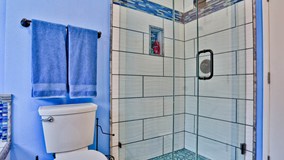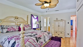 PRIDE OF OWNERSHIP. You are welcomed by a well kept yard, green grass, trees and flowering plants make for great curb appeal. Walking up the steps through the custom front door you are surrounded by bright colors, white trim and classic hardwood floors. Immediately to your left is the spacious living room which features plenty of windows for natural light, a cove ceiling, and the large brick fireplace as a focal point! Past a built in linen closet to the right are two sizable secondary bedrooms, with large windows for natural light, colorful walls, white trim and one has a walk in closet with a built in desk. Continuing down the hall is a beautifully remodeled bathroom with a gorgeous shower and spa bathtub. At the end of the hall is the spacious Master Bedroom with crown molding, baseboards, hardwood floors, windows on three sides and a 3/4 bath. Just past the living room to the left is the dining room. In here there are wood floors, bay windows, and a built-in cabinet to hold or display dishes. Passing through the dining room you are in the completely remodeled kitchen, which has a beautiful tile back splash, granite slab counters, an island and crisp, clean white cabinets. The flooring has also been upgraded to a pretty chocolate brown wood. Bathroom 3 doubles as the laundry for a great use of space.The courtyard with plenty of room for seating and a BBQ opens on one side to the big back yard. A long driveway for parking and a 2 car garage complete this home.
