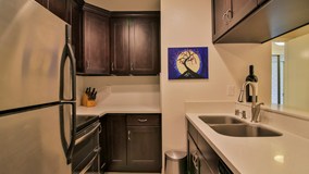 Beautifully updated condo in The Colony At Westwood. The full-service Colony building recently underwent a major renovation and now feels like you’re entering a modern boutique hotel with a 24-hour security guard. The condo features a renewed kitchen and bath with espresso shaker cabinets and shimmering quartz countertops. The shower has been tastefully upgraded. Stainless steel appliances. High quality “greige” colored carpeting and fresh paint. This condo has a spacious living area, a cozy dining area, breakfast bar and an ideal flex space that is currently being used for a home office (desk stays), but could easily accommodate a large dining table. The bedroom has very spacious dual closets and there’s an additional closet in the flex space. Secure private upper floor location that has good natural light and an open view. It will feel like you’re on vacation everyday with extensive amenities: pool, jacuzzi, sauna, steam room, fitness center, outdoor lounging areas, multiple waterfalls & koi ponds and entertain guests in the lavish community entertainment rooms. HOA pays water, gas, electric and earthquake insurance. On-site manager and gated parking with one assigned space very close to elevator. Building is across the street from Westwood Park. Amazing WalkScore of 92, just a short stroll to UCLA, Westwood Village restaurants & theaters. Chic Westside living!
