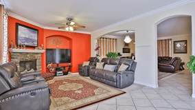 This is the one you've been waiting for!! Horse property in the highly sought after community of Arabella Ranch. Rare opportunity to own this flat usable lot. No slope what so ever. Enter past lush landscape and upgraded hardscape into double doors to spacious formal living room with crown molding. Gorgeous chandelier. Kitchen and open family room with fireplace. Perfect for entertainment. Kitchen houses upgraded new extended granite counter top and beautiful back splash. 24/24 tile flooring. Main floor bedroom with shower bath to include wall to wall closet doors. Ceiling fans in every room. Upstairs 3 bedroom and master bedroom. Spacious master suite with a great master bath and large walk in mirror closet doors. Master has an upgraded separate shower and soaking tub, dual sink All bedrooms have upgraded carpet. Upstairs laundry room with high cathedral ceiling with wide hallways giving a great feeling of open space. Property offers two side gates, both sides may be used as RV access. Backyard with low maintenance and beautiful water fall. 4 - 48ft by 30 ft corrals to house your favorite horses all situated on the right side of property leaving lots of free space. Sprinklers on timer, one switch to operate outdoor electrical lighting. Some grassy area, fruit trees and lots of concrete. Currently many animals on premises, but you would never of known, clean and tidy. No HOA. Assessable to all freeways, 60-15 and 10. Must see to really appreciate!