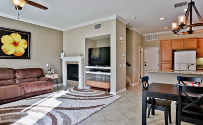 Immaculate Two Story town home in the gated Main Street Community. This home has all the bells and whistles..... The first floor has a Spacious Open Floor plan with a fireplace, custom crown molding, white window shutters, tile floors, granite counter tops in the kitchen. Remodeled guest bathroom, direct access to the 2 car garage and sliding doors out to the private patio area. Upstairs, is a large open loft, crown molding and shutters in all of the rooms, The master bathroom and full bathroom upstairs have been recently updated with custom tile, shower doors, new cabinets and granite counters. Dual sinks in the master with a large closet. Separate laundry room upstairs. The Community has a pool, spa, BBQ area, playground, and green belts.
