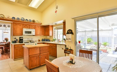 Welcome home to this two bedroom, two bathroom house in Sun City’s highly sought after Serenade 55+ community. You will immediately be welcomed by the high ceilings and spaciousness in the living room. As you walk from the living room towards the dining room, you will notice the house has been well maintained and received the utmost care by its owners. The cook in the house will appreciate the custom handmade cabinets and the island. You will enjoy the informal dining room connected to the kitchen. As you make your way into the master bedroom you will notice the abundant light the windows give and the spacious feel the high ceilings have. The en suite bathroom has a large his and hers sink counter top and a shower. For days you don't feel like taking a shower, relax in the bathtub for a bubble bath. The second bedroom will make a nice home office or traditional bedroom. Entertain guests with the large patio in the backyard. This property will make a perfect home for those who are looking for a quiet neighborhood close to shopping and entertainment.