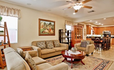 Welcome to this beautiful Craftsman Style Home in the desirable community of College Park. This community includes two pools, gym facility, picnic area, parks, and club house for your family to enjoy. Pride of ownership, this home features wood and tile flooring, in ceiling speakers, Epoxy garage floor, ceiling fans, custom entertainment center, aluminum patio cover, rain gutter, and many more. There is one guest bedroom and bath on the first level. The kitchen feature granite counter top, plenty of cabinet spaces, build in five burner cook-top and dual oven. Ceiling fan in all five bedrooms plus living and family room. A cozy gas fireplace in family room. The second floor features a separate laundry room with a sink and cabinets, four bedrooms including the master retreat, and two full baths. Double doors to the master suite with separate tub, shower and walk in closet. Juliet balcony with screen doors to enjoy the nice breeze. Entertain your guest in the spacious back yard with beautiful flowering plants and garden.