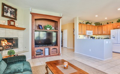 Eagle Glen's best!!! Gorgeous 3 bedroom plus a office with a view. Neutral colors with tile floors & upgraded carpet, Granite counter tops & Plantation Shutters. Extra tall French doors lead to the backyard with covered, roofed patio cover with ceiling fan, professionally landscaped and city lights view. This home has rain gutters and cabinets/work bench in the garage too.