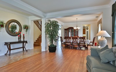 Remarkable upgraded Eastvale pool home! This exquisite home boasts 5 bedrooms, 4 bathrooms and approximately 4220 sqft of open floor plan. Upon entering the home you are welcomed to a formal living room and dining room, family room with fireplace, open kitchen with custom granite counter tops and upgraded Autumn Oak cabinets, oversized kitchen island, recessed lighting, stainless steel appliances, butler’s pantry, informal eating area with imported Italian flooring and crown molding throughout. Interior has been recently painted. Upstairs features spacious and open loft, master suite with dual sinks, stand up shower, separate sunk-in bathtub and spacious walk-in closet. Master suite contains 2 French doors that open up to a large deck with a magnificent view.