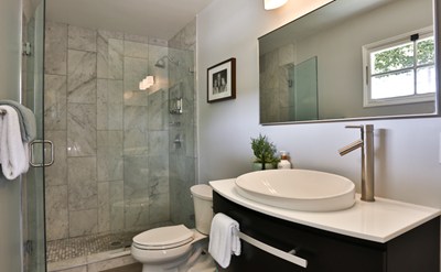 Charming 2 bed-2bath designer home in California Heights! Contemporary with touches of traditional design. The large living room has a gas fireplace, original crown molding and new recess lighting. Refinished ebony hardwood floors throughout and a custom chandelier hovers the dining room area. The new French doors lead you to a shady wood deck perfect for bbqing with steps to the enormous fenced and private backyard. The kitchen is fit for a chef. Remodeled with white shaker cabinets, white Carrara counters, beveled subway tile backsplash, recessed LED lighting, stainless stove and Bosch dishwasher. Master bedroom has inside laundry, large closet space and newly added bath with Carrara shower surround and espresso vanity. Second bedroom has a large walk-in closet neighboring the second newly remodeled bathroom. The home has upgraded plumbing and central A/C and a detached 2 car garage.