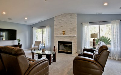 Enjoy this peaceful neighborhood with fantastic views in the prestigious community of Carriage Hills in Highland. Enter this single story home with open floor plan through the double door then step down to a formal living room with fireplace and views of the mountains. The spacious kitchen has stainless steel appliance, breakfast bar, built in china cabinet, desk and is open to the large family room with fireplace. Plenty of room for entertaining including a formal dining room. This home offers 2 master suites with adjoining bathrooms. Direct access to the 2 car garage from kitchen. Many tasteful upgrades have been completed including tile flooring, acoustic ceilings removed, new light fixtures, recessed lighting, surround sound, 2 updated fireplaces facades, new paint, and much more. Relax on your front porch in the evening and enjoy the beautiful city lights. Barbeque with friends and family out back with gorgeous mountain views. Delicious orange and lemon tree on side yard. Located in the Redlands school district. Easy freeway access. Close to shopping and restaurants. Low taxes and no HOA fees.