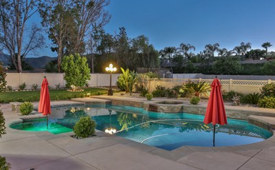 One of a kind Custom Single Story Stunner!! This 2014 beauty sits upon .78 acres. Beautifully built & designed this home complete with solar, features 4 bedrooms, a large office & 6 baths. As you drive up you will arrive to a lush, beautifully landscaped front yard. Entering the custom double door entry you arrive at a large dining room fit for entertaining. The huge family room takes you into a remarkable top of the line kitchen fit for a chef! Complete with granite countertops, stainless steel Decor 6 burner stove top, Custom Alder cabinets, double stainless steel KitchenAid oven, warmer drawer, microwave, dishwasher and built-in KitchenAid refrigerator. The master suite offers an oversized bedroom with a top of the line dream bathroom. Large walk-in cave shower, spa tub, quartz countertops, double sinks & vanity. As you make your way to the opposite side of the house you will pass by an on-suite with lush carpeting, walk-in closet & private bathroom with granite countertops & gorgeous tiled shower. As you find yourself towards the back of the house, you will arrive upon a mother-in-law suite. This suite is complete with ADA certified doorways. The suite also has a retreat with its own pool access & bathroom with granite countertops. Spectacular backyard with custom pool, built-in stainless steel BBQ as well as covered patio for entertaining. (Additional 14,000+ sq.ft. behind on flat lot to build tennis courts or another home!) The possibilities are endless!!