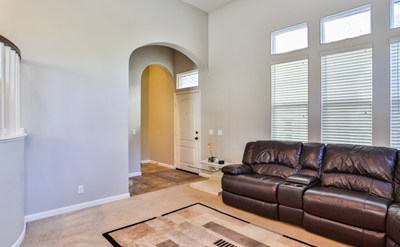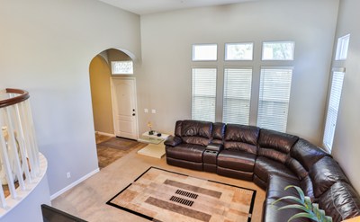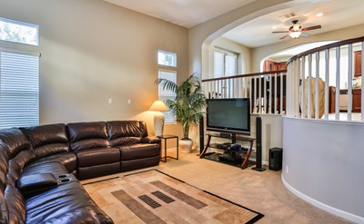 Beautiful move in ready end unit condo in the Market Street gated community. Step into the entryway with high ceilings and tile flooring. The living room is large and spacious with ceiling fan. Head up the stairs to the dining area and kitchen. The dining area features a ceiling fan and recessed lighting as well as beautiful tile flooring and wood railing that opens up to the living room below. The dining room also features a Juliet balcony perfect to let in some fresh air. The tile flooring flows through to the kitchen which is beautifully upgraded with granite counter tops, kitchen island with lots of extra storage, mahogany stained cabinets with 2 glass inlay cabinet doors, recessed lighting, pantry and stainless steel appliances. A second balcony is just off the kitchen and perfect for BBQ'ing. Head upstairs to the master bedroom which features a walk in closet, linen cabinets, private Juliet balcony and ceiling fan. The master bathroom is spacious with separate vanities, large soaking tub, glass enclosed shower and makeup vanity. The remaining 2 bedrooms are spacious with ceiling fans and share a bathroom. The 2 car garage is attached with direct access and has lots of storage space. The laundry closet is conveniently located within the unit w/shelving. The community features a gated pool, spa, picnic area, large clubhouse with full kitchen, pool table, couches & TV. All of this is located within walking distance of the Dos Lagos golf course and shopping center.