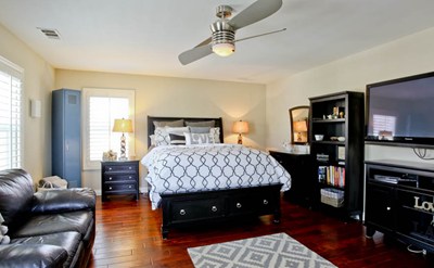 Upstairs you will find a huge Master bedroom with high ceilings, plantation shutters, wood floors and sitting area. The Master bath is spa quality and offers double vanity sinks, granite counters, whirlpool tub, frameless glass shower with tumbled marble tiles and a huge walk in closet. Three good size secondary bedrooms with plantation shutters, good size closets, wood floors and or carpet. Both guest baths were upgraded with tumble marble tile, granite counters and frameless glass shower enclosures. The separate Game Room is appointed with wood floors, ceiling fan and plantation shutters. The laundry room is conveniently located upstairs with a sink, granite counters and lots of cabinets.