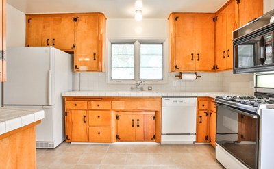 Extremely will kept home in a very desirable neighborhood. The floors have been refinished/redone, newer paint, majority of windows replaced, and updated central air/heat. The home has a large inviting living/dinning room with a brick wood burning fireplace. Lovely French doors open to a large covered patio area. The country kitchen is well designed with stove and refrigerator included, refinished cabinets and a wonderful counter area. There is also a breakfast table area. There are three bedrooms and two baths. One of the bedrooms could be used as a den or family room. The two car garage has a new automatic door opener. The fully enclosed backyard boasts lush landscaping with fruit trees, and room for outdoor entertaining. A perfect, well kept home for family living.