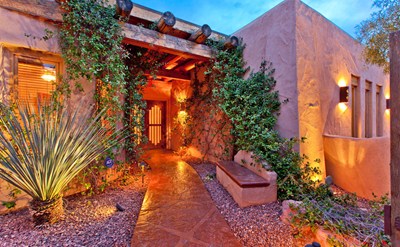 EXTRAORDINARY Authentic Southwestern Estate nestled within the exclusive Ten Oaks Guard Gated community. 5,092 square feet of impeccable living space offering 4 spacious bedrooms & bathrooms. Huge great room offering magnificent 20’ hewn log ceilings, new 18’’ porcelain tile flooring throughout, step-down living area with wrought iron railing, stack stone gas fireplace & entertainment center. Chef’s Kitchen boasts all the finest appointments including butcher block center island equipped with stainless vegetable sink, stainless steel commercial grade appliances, custom painted concrete counter tops, wood blinds & custom cabinetry with wine rack & huge walk-in pantry. Palatial master suite features gas fireplace with flagstone hearth. Luxury master bath has dual sinks, custom marble steam/sauna shower, large step-in sunken bathtub with whirlpool jets, handcrafted cabinetry & huge walk-in closet with custom shelving & built-in cabinets. Expansive patio room features 24’ pocket Panda door expandable to 16’ opening to savor those refreshing spring breezes.