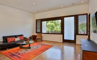 The Ultimate in California Indoor/Outdoor Living in the heart of Silverlake. Completely renovated by Gustavo Gubel, one of Silverlake’s most notable architects . Gustavo’s focus was clean lines , combining concrete, walnut reclaimed floors and Carrara marble creating a modern yet warm environment . No expense spared . Chefs’ kitchen features an island with Wolf stove and oven , suspended hood ,Carrara breakfast bar, walnut cabinets and Sub-Zero refrigerator with large windows overlooking the landscaped yard. Multiple windows throughout, open floor plan and sliding wall of glass in the dining area enables bringing the outdoor living experience in. 3 bedrooms/3 bath, Master with ensuite bath, floor to ceiling Carrara marble , 2nd bath with deep soaker. 3rd bedroom and bath in guest house perched on top of the hill in the yard, with so much potential. Lot Zoned for LAR2 makes this an incredible value! So many outdoor options ,covered outdoor dining area on concrete slab, deck off the guest house and large front travertine deck for the ultimate in entertaining .