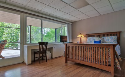 Located on a 10,000+ SF lot in the coveted La Canada School District, this light-filled 2+ bedroom, 1.5 bath Mid-Century Modern home was designed by an architect as his residence & studio in 1946. From a private courtyard accessed via a circular drive, the front door & adjacent floor-to-ceiling windows reveal the home's central living space which features walls of glass overlooking the backyard with multiple patios, an abundance of flowering shrubs & fruit trees, and great southern exposure. Original details abound including built-ins in the dining area, eat-in kitchen & master bedroom, and dual-paned windows & solar panels ensure comfort & low utility costs year-round. Two bedrooms & a full bath open to a private hall, while the den has a separate entrance & adjacent 1/2 bath, and would make a great home office or 3rd bedroom. On the market for the first time since 1958, this property presents a rare opportunity to restore, update, expand, or build new and enjoy life in La Canada.