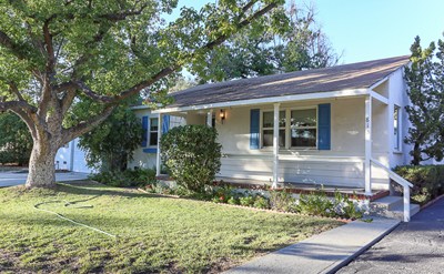 Located on a lovely tree-lined street, this 2 bed, 1 bath home on a 7,000+ SF lot presents a great opportunity to move into a desirable neighborhood, renovate, and/or expand. The covered front porch overlooks the tree-shaded front yard, and opens to reveal original 1940s features such as coved ceilings, arched doorways, & built-in shelving. The living room is large, and the adjacent dining area connects to the kitchen w/ granite counters. Both bedrooms are spacious, and there appear to be original hardwood floors beneath the carpets throughout. The home also features indoor laundry room, a detached 2-car garage w/ gated driveway for additional off-street parking, and a large, private backyard with multiple patios and fruit trees, perfect for a relaxing weekend gardening or lounging & taking in the gorgeous mountain views. Minutes from shopping & restaurants, this home presents the perfect opportunity to fix make it your own. Welcome Home!