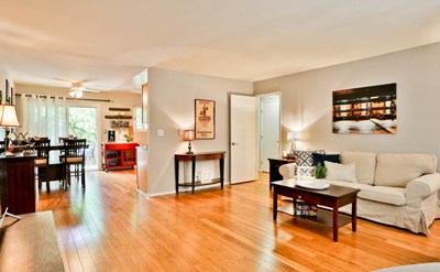 Beautiful updated and upgraded Bluff Heights condo for sale. Bamboo wood floors, scraped ceilings, custom baseboards and modern neutral paint throughout. Open floor plan kitchen with newer cabinets, dining area and slider to the private south facing patio. New windows throughout, inside laundry hookups, remodeled bathroom and 1 secured parking space with storage.