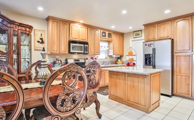 This spectacular 6 bedroom, 4 bath home has everything that you need. Walking up to the front door, you pass a 6ft. fountain and granite inset accentuates the driveway with custom block and wrought iron perimeter across the front yard. All ceramic tile downstairs with a sliding glass door opens to the full length patio. The backyard boasts a 16X14 permitted shed and a casita. Great home for someone who has an extended family who needs a home. The orange, lemon and agave tree produce lots of fruit for fresh fruit snacking . The bathrooms have all been updated and custom stone/granite adorns the bathrooms. Newer vinyl windows throughout. The kitchen has been upgraded with recessed lighting newer cabinets and granite countertops. Central dual zoned a/c and central heating throughout. Air conditioner upstairs is a 4 unit and a 5 ton unit located downstairs were replaced in 2010. Move-in ready with electric and plumbing repiped in 2008. Custom baseboard throughout. The second floor is complete with 2 master bedrooms a living room and a granite top kitchen. Windows replaced in 2008. Must see to appreciate this updated move in 2 story home.