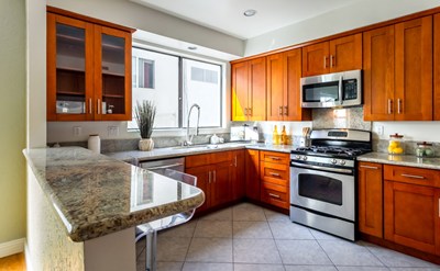 Beautiful 3 bedroom, 2.5 bath townhouse that feels like a private home. Spacious living room area with high ceilings, hardwood floors, gas/wood burning fireplace and patio perfect for summer BBQ's. Open floor plan-living room flows into the dining room and large, recently remodeled kitchen with generous counter and storage space, custom wood cabinets, and stainless steel appliances. 3 bd upstairs with lots of light and hallway storage. Master offers his and her walk-in closets and spacious master bath. Also offers a bonus 158 sq ft basement area that is perfect for extra storage and includes in-unit washer and dryer. Many extras including high efficiency HVAC system, direct access from unit to gated garage with 2 car parking and option to rent third parking spot from HOA (includes earthquake insurance.) Great location near 10 and 405 freeways and walking distance to the Expo line. Close to popular restaurants and to Venice, Culver City, Santa Monica, and Beverly Hills shopping areas.