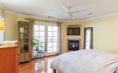 A formal dining room with French doors open to a romantic patio and also leads to gourmet kitchen with stainless steel appliances, custom crafted maple cabinetry and desk built-ins with full back splash. A grand master suite has a fireplace, walk-in closet and all marble bath. Washer & dryer area is conveniently located at the top of the stairs from a two car private attached garage with ample storage. Some upgrades include in 2012 some paint, Avalon wood shutters installed, mosaic tile in master bath, some dimmers added to lights, kitchen changed lighting, newer HVAC 5 ton system on the roof.