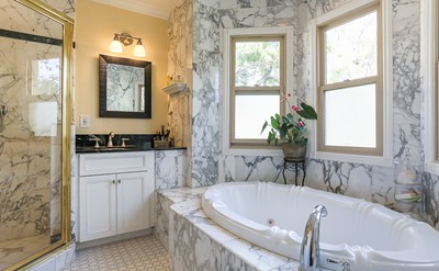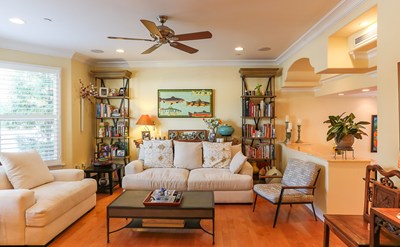 Inspired by The Villa Serbelloni situated on the edge of Lake Como in Bellagio Italy in the heart of Pasadena, Bellagio Village Townhomes is located conveniently next to the Metro Gold Line, Paseo Mall, Whole Foods, Trader Joe's and close to Old Pasadena. This one of a kind townhome complex features a mosaic domed clock tower within a spectacularly landscaped courtyard and koi pond with cascading waterfalls. This corner unit residence has direct front door access from Marengo Avenue with an equally stunning interior and features the finest granite, marble, stonework, premium wood flooring, extensive crown & base moldings throughout. A spacious living room with a fireplace, the unit is wired for sound and custom shutters are featured downstairs. Adjacent to the 2nd bedroom is an office or den.