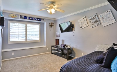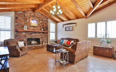 This single story horse property sits on a FLAT 22,216 SF LOT on a quiet cul-de-sac street with easy access to miles of riding trails. Ranch style home features 4 oversized bedrooms with crown molding and ceiling fans. Master bedroom has a walk-in closet and door leading to back yard. Other upgrades include plantation shutters throughout, fully upgraded bathrooms, granite counters in kitchen, spectacular full-wall brick fireplace and an absolutely stunning custom built, high-vaulted wood beam ceiling in family room and dining area completely unique to this property. Indoor laundry room offers extra storage space and cabinets. Large paddock with shelter area and stall for your horses located at rear of property leaving you plenty of space to create your backyard dream get-a-way.